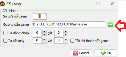 bấm vào dấu mũi tên chọn đường dẫn đến Game.exe ở trong bản Full_KIEMTHECHUAN. Rồi bấm ok -