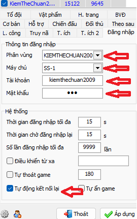 B5.Auto Login: Đảm bảo bạn đã click chọn vào nhân vật cần Auto đăng nhập