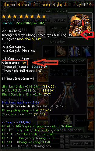 Một trong những trang bị cấp 10 đã luyện hóa cấp 1